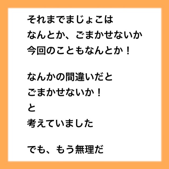 モラハラ事件簿 final 72022.05.13モラハラ事件簿モラハラ ■インスタはこちら 最初から読めます。 ↓まじょこのインスタ■前回のお話はこちら ↓モラハラ事件簿 final 6■本編広告 広告 ■あとがきあんなにみんなで隠したのになぜーんぶ無駄になったと 静かに憤慨していました 0 コメントはこちら 同じカテゴリの記事 モラハラ事件簿〜??編〜 3 モラハラ事件簿〜??編〜 2 モラハラ事件簿〜??編〜 1 モラハラ事件簿〜お別れのメール編〜 4 モラハラ事件簿〜お別れのメール編〜 3 モラハラ事件簿〜お別れのメール編〜 2 モラハラ事件簿〜お別れのメール編〜 1 モラハラ事件簿〜怒る編〜 7 モラハラ事件簿〜怒る編〜 6 モラハラ事件簿〜怒る編〜 5 モラハラ事件簿〜怒る編〜 4 モラハラ事件簿〜怒る編〜 3 モラハラ事件簿〜怒る編〜 2 モラハラ事件簿〜怒る編〜 1 モラハラ事件簿〜反撃開始編〜 8 モラハラ事件簿〜反撃開始編〜 7 モラハラ事件簿〜反撃開始編〜 6 モラハラ事件簿〜反撃開始編〜 5 モラハラ事件簿〜反撃開始編〜 4 モラハラ事件簿〜反撃開始編〜 3 モラハラ事件簿〜反撃開始編〜 2 モラハラ事件簿〜反撃開始編〜 1 モラハラ事件簿〜電話編〜 7 モラハラ事件簿〜電話編〜 6 モラハラ事件簿〜電話編〜 5 モラハラ事件簿〜電話編〜 4 モラハラ事件簿〜電話編〜 3 モラハラ事件簿〜電話編〜 2 モラハラ事件簿〜電話編〜 1 モラハラ事件簿〜面会編〜 5 モラハラ事件簿〜面会編〜 4 モラハラ事件簿〜面会編〜 3 モラハラ事件簿〜面会編〜 2 モラハラ事件簿〜面会編〜 1 モラハラ事件簿〜どこにいるの?編〜 8 モラハラ事件簿〜どこにいるの?編〜 7 モラハラ事件簿〜どこにいるの?編〜 6 モラハラ事件簿〜どこにいるの?編〜 5 モラハラ事件簿〜どこにいるの?編〜 4 モラハラ事件簿〜どこにいるの?編〜 3 モラハラ事件簿〜どこにいるの?編〜 2 モラハラ事件簿〜どこにいるの?編〜 1 モラハラ事件簿〜置き手紙編〜 4 モラハラ事件簿〜置き手紙編〜 3 モラハラ事件簿〜置き手紙編〜 2 モラハラ事件簿〜置き手紙編〜1 モラハラ事件簿〜行方不明編〜 5 モラハラ事件簿〜行方不明編〜 4 モラハラ事件簿〜行方不明編〜 3 モラハラ事件簿〜行方不明編〜2 モラハラ事件簿〜行方不明編〜 1 モラハラ事件簿〜幕間〜 モラハラ事件簿〜娘からのSOS編〜 10 モラハラ事件簿〜娘からのSOS編〜 9 モラハラ事件簿〜娘からのSOS編〜 8 モラハラ事件簿〜娘からのSOS編〜 7 モラハラ事件簿〜娘からのSOS編〜 6 モラハラ事件簿〜娘からのSOS編〜 5 モラハラ事件簿〜娘からのSOS編〜 4 モラハラ事件簿〜娘からのSOS編〜 3 モラハラ事件簿〜娘からのSOS編〜 2 モラハラ事件簿〜娘からのSOS編〜1 モラハラ事件簿〜家出が誘拐編〜 10 モラハラ事件簿〜家出が誘拐編〜 9 モラハラ事件簿〜家出が誘拐編〜 8 モラハラ事件簿〜家出が誘拐編〜 7 モラハラ事件簿〜家出が誘拐編〜 6 モラハラ事件簿〜家出が誘拐編〜 5 モラハラ事件簿〜家出が誘拐編〜 4 モラハラ事件簿〜家出が誘拐編〜 3 モラハラ事件簿〜家出が誘拐編〜 2 モラハラ事件簿〜家出が誘拐編〜 1 モラハラ事件簿〜ハワイ旅行編〜 13 モラハラ事件簿〜ハワイ旅行編〜 12 モラハラ事件簿〜ハワイ旅行編〜 11 モラハラ事件簿〜ハワイ旅行編〜 10 モラハラ事件簿〜ハワイ旅行編〜 9 モラハラ事件簿〜ハワイ旅行編〜 8 モラハラ事件簿〜ハワイ旅行編〜 7 モラハラ事件簿〜ハワイ旅行編〜 6 モラハラ事件簿〜ハワイ旅行編〜 5 モラハラ事件簿〜ハワイ旅行編〜 4 モラハラ事件簿〜ハワイ旅行編〜 3 モラハラ事件簿〜ハワイ旅行編〜 2 モラハラ事件簿〜ハワイ旅行編〜 1 モラハラ事件簿〜クレーマー編〜 13 モラハラ事件簿〜クレーマー編〜 12 モラハラ事件簿〜クレーマー編〜 11 モラハラ事件簿〜クレーマー編〜 10 モラハラ事件簿〜クレーマー編〜 9 モラハラ事件簿〜クレーマー編〜 8 モラハラ事件簿〜クレーマー編〜 7 モラハラ事件簿〜クレーマー編〜 6 モラハラ事件簿〜クレーマー編〜 5 モラハラ事件簿〜クレーマー編〜 4 モラハラ事件簿〜クレーマー編〜 3 モラハラ事件簿〜クレーマー編〜 2 モラハラ事件簿〜クレーマー編〜 1 モラハラ事件簿~小学校卒業式編~ 4 モラハラ事件簿~小学校卒業式編~ 3 モラハラ事件簿~小学校卒業式編~ 2 モラハラ事件簿〜小学校卒業式編〜 1 モラハラ事件簿 final 23 モラハラ事件簿 final 22 モラハラ事件簿 final 21 モラハラ事件簿 final 20 モラハラ事件簿 final 19 モラハラ事件簿 final 18 モラハラ事件簿 final 17 モラハラ事件簿 final 16 モラハラ事件簿 final 15 モラハラ事件簿 final 14 モラハラ事件簿 final 13 モラハラ事件簿 final 12 モラハラ事件簿 final 11 モラハラ事件簿 final 10 モラハラ事件簿 final 9 モラハラ事件簿 final 8 モラハラ事件簿 final 7 モラハラ事件簿 final 6 モラハラ事件簿 final 5 モラハラ事件簿 final 4 モラハラ事件簿 final 3 モラハラ事件簿 final 2 モラハラ事件簿 final 1 モラハラ事件簿 197 モラハラ事件簿 196 モラハラ事件簿 195 モラハラ事件簿 194 モラハラ事件簿 193 モラハラ事件簿 192 モラハラ事件簿 191 モ