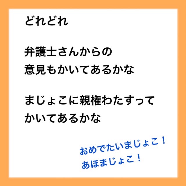 モラハラ事件簿 final 132022.05.25モラハラ事件簿モラハラ ■インスタはこちら 最初から読めます。 ↓まじょこのインスタ■前回のお話はこちら ↓モラハラ事件簿 final 12■本編広告 広告 ■あとがき拘置所へのわかりやすい 行き方のお手紙でした!そして、リストが… 0 コメントはこちら 同じカテゴリの記事 モラハラ事件簿〜??編〜 3 モラハラ事件簿〜??編〜 2 モラハラ事件簿〜??編〜 1 モラハラ事件簿〜お別れのメール編〜 4 モラハラ事件簿〜お別れのメール編〜 3 モラハラ事件簿〜お別れのメール編〜 2 モラハラ事件簿〜お別れのメール編〜 1 モラハラ事件簿〜怒る編〜 7 モラハラ事件簿〜怒る編〜 6 モラハラ事件簿〜怒る編〜 5 モラハラ事件簿〜怒る編〜 4 モラハラ事件簿〜怒る編〜 3 モラハラ事件簿〜怒る編〜 2 モラハラ事件簿〜怒る編〜 1 モラハラ事件簿〜反撃開始編〜 8 モラハラ事件簿〜反撃開始編〜 7 モラハラ事件簿〜反撃開始編〜 6 モラハラ事件簿〜反撃開始編〜 5 モラハラ事件簿〜反撃開始編〜 4 モラハラ事件簿〜反撃開始編〜 3 モラハラ事件簿〜反撃開始編〜 2 モラハラ事件簿〜反撃開始編〜 1 モラハラ事件簿〜電話編〜 7 モラハラ事件簿〜電話編〜 6 モラハラ事件簿〜電話編〜 5 モラハラ事件簿〜電話編〜 4 モラハラ事件簿〜電話編〜 3 モラハラ事件簿〜電話編〜 2 モラハラ事件簿〜電話編〜 1 モラハラ事件簿〜面会編〜 5 モラハラ事件簿〜面会編〜 4 モラハラ事件簿〜面会編〜 3 モラハラ事件簿〜面会編〜 2 モラハラ事件簿〜面会編〜 1 モラハラ事件簿〜どこにいるの?編〜 8 モラハラ事件簿〜どこにいるの?編〜 7 モラハラ事件簿〜どこにいるの?編〜 6 モラハラ事件簿〜どこにいるの?編〜 5 モラハラ事件簿〜どこにいるの?編〜 4 モラハラ事件簿〜どこにいるの?編〜 3 モラハラ事件簿〜どこにいるの?編〜 2 モラハラ事件簿〜どこにいるの?編〜 1 モラハラ事件簿〜置き手紙編〜 4 モラハラ事件簿〜置き手紙編〜 3 モラハラ事件簿〜置き手紙編〜 2 モラハラ事件簿〜置き手紙編〜1 モラハラ事件簿〜行方不明編〜 5 モラハラ事件簿〜行方不明編〜 4 モラハラ事件簿〜行方不明編〜 3 モラハラ事件簿〜行方不明編〜2 モラハラ事件簿〜行方不明編〜 1 モラハラ事件簿〜幕間〜 モラハラ事件簿〜娘からのSOS編〜 10 モラハラ事件簿〜娘からのSOS編〜 9 モラハラ事件簿〜娘からのSOS編〜 8 モラハラ事件簿〜娘からのSOS編〜 7 モラハラ事件簿〜娘からのSOS編〜 6 モラハラ事件簿〜娘からのSOS編〜 5 モラハラ事件簿〜娘からのSOS編〜 4 モラハラ事件簿〜娘からのSOS編〜 3 モラハラ事件簿〜娘からのSOS編〜 2 モラハラ事件簿〜娘からのSOS編〜1 モラハラ事件簿〜家出が誘拐編〜 10 モラハラ事件簿〜家出が誘拐編〜 9 モラハラ事件簿〜家出が誘拐編〜 8 モラハラ事件簿〜家出が誘拐編〜 7 モラハラ事件簿〜家出が誘拐編〜 6 モラハラ事件簿〜家出が誘拐編〜 5 モラハラ事件簿〜家出が誘拐編〜 4 モラハラ事件簿〜家出が誘拐編〜 3 モラハラ事件簿〜家出が誘拐編〜 2 モラハラ事件簿〜家出が誘拐編〜 1 モラハラ事件簿〜ハワイ旅行編〜 13 モラハラ事件簿〜ハワイ旅行編〜 12 モラハラ事件簿〜ハワイ旅行編〜 11 モラハラ事件簿〜ハワイ旅行編〜 10 モラハラ事件簿〜ハワイ旅行編〜 9 モラハラ事件簿〜ハワイ旅行編〜 8 モラハラ事件簿〜ハワイ旅行編〜 7 モラハラ事件簿〜ハワイ旅行編〜 6 モラハラ事件簿〜ハワイ旅行編〜 5 モラハラ事件簿〜ハワイ旅行編〜 4 モラハラ事件簿〜ハワイ旅行編〜 3 モラハラ事件簿〜ハワイ旅行編〜 2 モラハラ事件簿〜ハワイ旅行編〜 1 モラハラ事件簿〜クレーマー編〜 13 モラハラ事件簿〜クレーマー編〜 12 モラハラ事件簿〜クレーマー編〜 11 モラハラ事件簿〜クレーマー編〜 10 モラハラ事件簿〜クレーマー編〜 9 モラハラ事件簿〜クレーマー編〜 8 モラハラ事件簿〜クレーマー編〜 7 モラハラ事件簿〜クレーマー編〜 6 モラハラ事件簿〜クレーマー編〜 5 モラハラ事件簿〜クレーマー編〜 4 モラハラ事件簿〜クレーマー編〜 3 モラハラ事件簿〜クレーマー編〜 2 モラハラ事件簿〜クレーマー編〜 1 モラハラ事件簿~小学校卒業式編~ 4 モラハラ事件簿~小学校卒業式編~ 3 モラハラ事件簿~小学校卒業式編~ 2 モラハラ事件簿〜小学校卒業式編〜 1 モラハラ事件簿 final 23 モラハラ事件簿 final 22 モラハラ事件簿 final 21 モラハラ事件簿 final 20 モラハラ事件簿 final 19 モラハラ事件簿 final 18 モラハラ事件簿 final 17 モラハラ事件簿 final 16 モラハラ事件簿 final 15 モラハラ事件簿 final 14 モラハラ事件簿 final 13 モラハラ事件簿 final 12 モラハラ事件簿 final 11 モラハラ事件簿 final 10 モラハラ事件簿 final 9 モラハラ事件簿 final 8 モラハラ事件簿 final 7 モラハラ事件簿 final 6 モラハラ事件簿 final 5 モラハラ事件簿 final 4 モラハラ事件簿 final 3 モラハラ事件簿 final 2 モラハラ事件簿 final 1 モラハラ事件簿 197 モラハラ事件簿 196 モラハラ事件簿 195 モラハラ事件簿 194 モラハラ事件簿 193 モラハラ事件簿 192 モラハラ事件簿 191 モラハラ事件