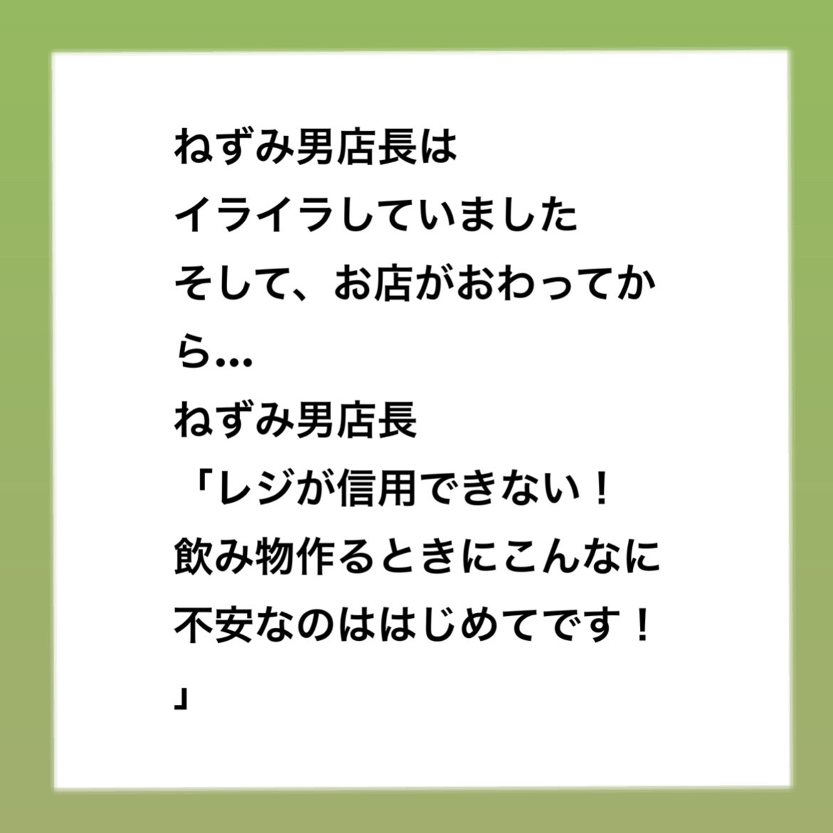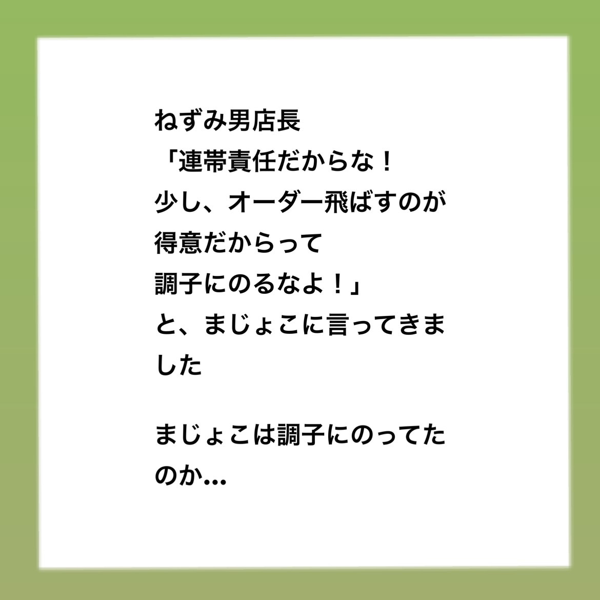 パワハラ事件簿 コーヒー店編 〜 52024.05.09パワハラ事件簿パワハラ ■インスタはこちら 最初から読めます。 ↓まじょこのインスタ■前回のお話はこちら ↓パワハラ事件簿 コーヒー店編 〜 4■本編広告 広告 0 コメントはこちら 同じカテゴリの記事 パワハラ事件簿 コーヒー店編 〜 48 パワハラ事件簿 コーヒー店編 〜 47 パワハラ事件簿 コーヒー店編 〜 46 パワハラ事件簿 コーヒー店編 〜 45 パワハラ事件簿 コーヒー店編 〜 44 パワハラ事件簿 コーヒー店編 〜 43 パワハラ事件簿 コーヒー店編 〜 42 パワハラ事件簿 コーヒー店編 〜 41 パワハラ事件簿 コーヒー店編 〜 40 パワハラ事件簿 コーヒー店編 〜 39 パワハラ事件簿 コーヒー店編 〜 38 パワハラ事件簿 コーヒー店編 〜 37 パワハラ事件簿 コーヒー店編 〜 36 パワハラ事件簿 コーヒー店編 〜 35 パワハラ事件簿 コーヒー店編 〜 34 パワハラ事件簿 コーヒー店編 〜 33 パワハラ事件簿 コーヒー店編 〜 32 パワハラ事件簿 コーヒー店編 〜 31 パワハラ事件簿 コーヒー店編 〜 30 パワハラ事件簿 コーヒー店編 〜 29 パワハラ事件簿 コーヒー店編 〜 28 パワハラ事件簿 コーヒー店編 〜 27 パワハラ事件簿 コーヒー店編 〜 26 パワハラ事件簿 コーヒー店編 〜 25 パワハラ事件簿 コーヒー店編 〜 24 パワハラ事件簿 コーヒー店編 〜 23 パワハラ事件簿 コーヒー店編 〜 22 パワハラ事件簿 コーヒー店編 〜 21 パワハラ事件簿 コーヒー店編 〜 20 パワハラ事件簿 コーヒー店編 〜 19 パワハラ事件簿 コーヒー店編 〜 18 パワハラ事件簿 コーヒー店編 〜 17 パワハラ事件簿 コーヒー店編 〜 16 パワハラ事件簿 コーヒー店編 〜 15 パワハラ事件簿 コーヒー店編 〜 14 パワハラ事件簿 コーヒー店編 〜 13 パワハラ事件簿 コーヒー店編 〜 12 パワハラ事件簿 コーヒー店編 〜 11 パワハラ事件簿 コーヒー店編 〜 10 パワハラ事件簿 コーヒー店編 〜 9 パワハラ事件簿 コーヒー店編 〜 8 パワハラ事件簿 コーヒー店編 〜 7 パワハラ事件簿 コーヒー店編 〜 6 パワハラ事件簿 コーヒー店編 〜 5 パワハラ事件簿 コーヒー店編 〜 4 パワハラ事件簿 コーヒー店編 〜3 パワハラ事件簿 コーヒー店編 〜 2 パワハラ事件簿 コーヒー店編 〜 1 パワハラ事件簿〜幼稚園の先生編〜 115 パワハラ事件簿〜幼稚園の先生編〜 114 パワハラ事件簿〜幼稚園の先生編〜 113 パワハラ事件簿〜幼稚園の先生編〜 112 パワハラ事件簿〜幼稚園の先生編〜 111 パワハラ事件簿〜幼稚園の先生編〜 110 パワハラ事件簿〜幼稚園の先生編〜 109 パワハラ事件簿〜幼稚園の先生編〜 108 パワハラ事件簿〜幼稚園の先生編〜 107 パワハラ事件簿〜幼稚園の先生編〜 106 パワハラ事件簿〜幼稚園の先生編〜 105 パワハラ事件簿〜幼稚園の先生編〜 104 パワハラ事件簿〜幼稚園の先生編〜 103 パワハラ事件簿〜幼稚園の先生編〜 102 パワハラ事件簿〜幼稚園の先生編〜 101 パワハラ事件簿〜幼稚園の先生編〜 100 パワハラ事件簿〜幼稚園の先生編〜 99 パワハラ事件簿〜幼稚園の先生編〜 98 パワハラ事件簿〜幼稚園の先生編〜 97 パワハラ事件簿〜幼稚園の先生編〜 96 パワハラ事件簿〜幼稚園の先生編〜 95 パワハラ事件簿〜幼稚園の先生編〜 94 パワハラ事件簿〜幼稚園の先生編〜 93 パワハラ事件簿〜幼稚園の先生編〜 92 パワハラ事件簿〜幼稚園の先生編〜 91 パワハラ事件簿〜幼稚園の先生編〜 90 パワハラ事件簿〜幼稚園の先生編〜 89 パワハラ事件簿〜幼稚園の先生編〜 88 パワハラ事件簿〜幼稚園の先生編〜 87 パワハラ事件簿〜幼稚園の先生編〜 86 パワハラ事件簿〜幼稚園の先生編〜 85 パワハラ事件簿〜幼稚園の先生編〜 84 パワハラ事件簿〜幼稚園の先生編〜 83 パワハラ事件簿〜幼稚園の先生編〜 82 園長先生とまじょこ 後編 園長先生とまじょこ 前編 パワハラ事件簿〜幼稚園の先生編〜 81 パワハラ事件簿〜幼稚園の先生編〜 80 パワハラ事件簿〜幼稚園の先生編〜 79 パワハラ事件簿〜幼稚園の先生編〜 78 パワハラ事件簿〜幼稚園の先生編〜 77 パワハラ事件簿〜幼稚園の先生編〜 76 パワハラ事件簿〜幼稚園の先生編〜 75 パワハラ事件簿〜幼稚園の先生編〜 74 パワハラ事件簿〜幼稚園の先生編〜 73 パワハラ事件簿〜幼稚園の先生編〜 72 パワハラ事件簿〜幼稚園の先生編〜 71 パワハラ事件簿〜幼稚園の先生編〜 70 パワハラ事件簿〜幼稚園の先生編〜 69 パワハラ事件簿〜幼稚園の先生編〜 68 パワハラ事件簿〜幼稚園の先生編〜 67 パワハラ事件簿〜幼稚園の先生編〜 66 パワハラ事件簿〜幼稚園の先生編〜 65 パワハラ事件簿〜幼稚園の先生編〜 64 パワハラ事件簿〜幼稚園の先生編〜 63 パワハラ事件簿〜幼稚園の先生編〜 62 パワハラ事件簿〜幼稚園の先生編〜 61 パワハラ事件簿〜幼稚園の先生編〜 60 パワハラ事件簿〜幼稚園の先生編〜 59 パワハラ事件簿〜幼稚園の先生編〜 58 パワハラ事件簿〜幼稚園の先生編〜 57 パワハラ事件簿〜幼稚園の先生編〜 56 パワハラ事件簿〜幼稚園の先生編〜 55 パワハラ事件簿〜幼稚園の先生編〜 54 パワハラ事件簿〜幼稚園の先生編〜 53 パワハ
