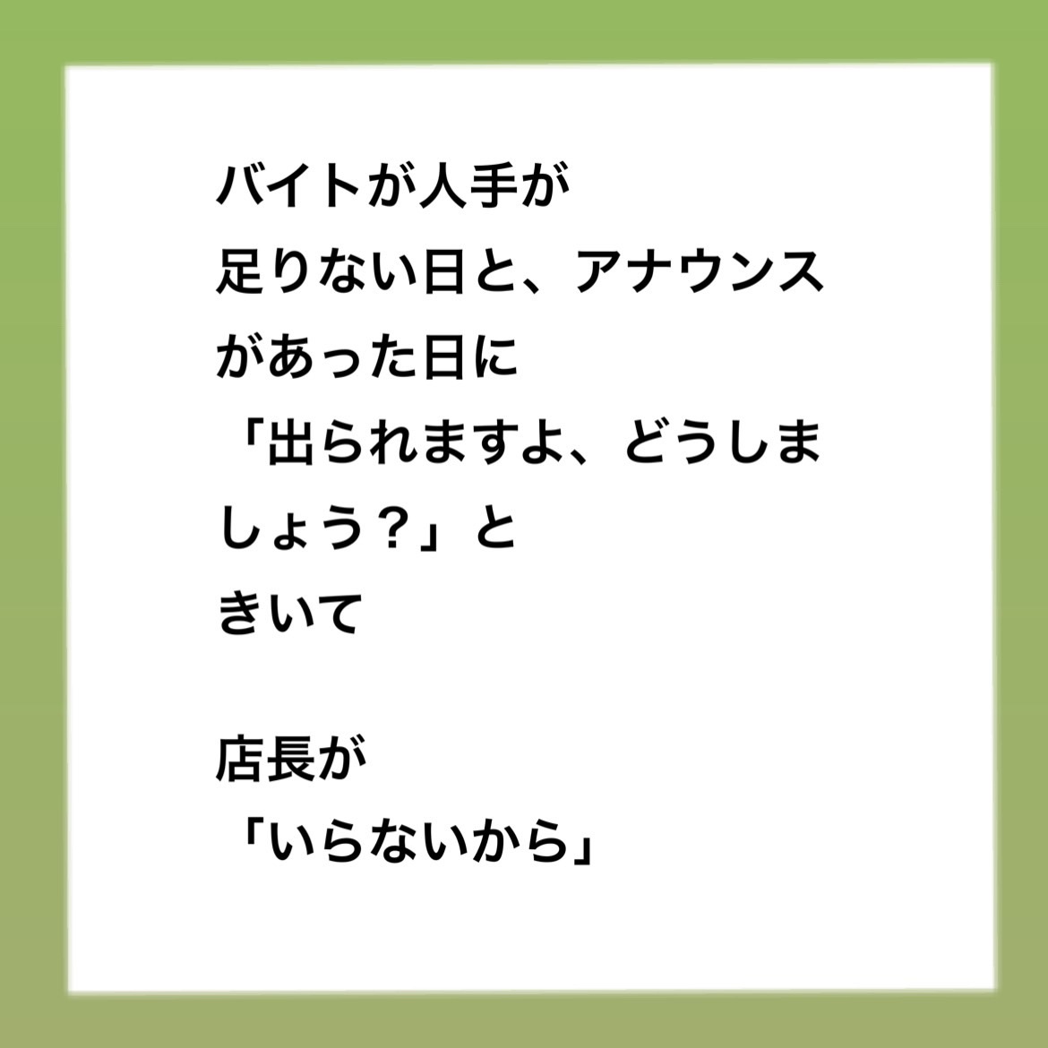 パワハラ事件簿 コーヒー店編 〜 142024.05.30パワハラ事件簿パワハラ ■インスタはこちら 最初から読めます。 ↓まじょこのインスタ■前回のお話はこちら ↓パワハラ事件簿 コーヒー店編 〜 13■本編広告 広告 0 コメントはこちら 同じカテゴリの記事 パワハラ事件簿 コーヒー店編 〜 48 パワハラ事件簿 コーヒー店編 〜 47 パワハラ事件簿 コーヒー店編 〜 46 パワハラ事件簿 コーヒー店編 〜 45 パワハラ事件簿 コーヒー店編 〜 44 パワハラ事件簿 コーヒー店編 〜 43 パワハラ事件簿 コーヒー店編 〜 42 パワハラ事件簿 コーヒー店編 〜 41 パワハラ事件簿 コーヒー店編 〜 40 パワハラ事件簿 コーヒー店編 〜 39 パワハラ事件簿 コーヒー店編 〜 38 パワハラ事件簿 コーヒー店編 〜 37 パワハラ事件簿 コーヒー店編 〜 36 パワハラ事件簿 コーヒー店編 〜 35 パワハラ事件簿 コーヒー店編 〜 34 パワハラ事件簿 コーヒー店編 〜 33 パワハラ事件簿 コーヒー店編 〜 32 パワハラ事件簿 コーヒー店編 〜 31 パワハラ事件簿 コーヒー店編 〜 30 パワハラ事件簿 コーヒー店編 〜 29 パワハラ事件簿 コーヒー店編 〜 28 パワハラ事件簿 コーヒー店編 〜 27 パワハラ事件簿 コーヒー店編 〜 26 パワハラ事件簿 コーヒー店編 〜 25 パワハラ事件簿 コーヒー店編 〜 24 パワハラ事件簿 コーヒー店編 〜 23 パワハラ事件簿 コーヒー店編 〜 22 パワハラ事件簿 コーヒー店編 〜 21 パワハラ事件簿 コーヒー店編 〜 20 パワハラ事件簿 コーヒー店編 〜 19 パワハラ事件簿 コーヒー店編 〜 18 パワハラ事件簿 コーヒー店編 〜 17 パワハラ事件簿 コーヒー店編 〜 16 パワハラ事件簿 コーヒー店編 〜 15 パワハラ事件簿 コーヒー店編 〜 14 パワハラ事件簿 コーヒー店編 〜 13 パワハラ事件簿 コーヒー店編 〜 12 パワハラ事件簿 コーヒー店編 〜 11 パワハラ事件簿 コーヒー店編 〜 10 パワハラ事件簿 コーヒー店編 〜 9 パワハラ事件簿 コーヒー店編 〜 8 パワハラ事件簿 コーヒー店編 〜 7 パワハラ事件簿 コーヒー店編 〜 6 パワハラ事件簿 コーヒー店編 〜 5 パワハラ事件簿 コーヒー店編 〜 4 パワハラ事件簿 コーヒー店編 〜3 パワハラ事件簿 コーヒー店編 〜 2 パワハラ事件簿 コーヒー店編 〜 1 パワハラ事件簿〜幼稚園の先生編〜 115 パワハラ事件簿〜幼稚園の先生編〜 114 パワハラ事件簿〜幼稚園の先生編〜 113 パワハラ事件簿〜幼稚園の先生編〜 112 パワハラ事件簿〜幼稚園の先生編〜 111 パワハラ事件簿〜幼稚園の先生編〜 110 パワハラ事件簿〜幼稚園の先生編〜 109 パワハラ事件簿〜幼稚園の先生編〜 108 パワハラ事件簿〜幼稚園の先生編〜 107 パワハラ事件簿〜幼稚園の先生編〜 106 パワハラ事件簿〜幼稚園の先生編〜 105 パワハラ事件簿〜幼稚園の先生編〜 104 パワハラ事件簿〜幼稚園の先生編〜 103 パワハラ事件簿〜幼稚園の先生編〜 102 パワハラ事件簿〜幼稚園の先生編〜 101 パワハラ事件簿〜幼稚園の先生編〜 100 パワハラ事件簿〜幼稚園の先生編〜 99 パワハラ事件簿〜幼稚園の先生編〜 98 パワハラ事件簿〜幼稚園の先生編〜 97 パワハラ事件簿〜幼稚園の先生編〜 96 パワハラ事件簿〜幼稚園の先生編〜 95 パワハラ事件簿〜幼稚園の先生編〜 94 パワハラ事件簿〜幼稚園の先生編〜 93 パワハラ事件簿〜幼稚園の先生編〜 92 パワハラ事件簿〜幼稚園の先生編〜 91 パワハラ事件簿〜幼稚園の先生編〜 90 パワハラ事件簿〜幼稚園の先生編〜 89 パワハラ事件簿〜幼稚園の先生編〜 88 パワハラ事件簿〜幼稚園の先生編〜 87 パワハラ事件簿〜幼稚園の先生編〜 86 パワハラ事件簿〜幼稚園の先生編〜 85 パワハラ事件簿〜幼稚園の先生編〜 84 パワハラ事件簿〜幼稚園の先生編〜 83 パワハラ事件簿〜幼稚園の先生編〜 82 園長先生とまじょこ 後編 園長先生とまじょこ 前編 パワハラ事件簿〜幼稚園の先生編〜 81 パワハラ事件簿〜幼稚園の先生編〜 80 パワハラ事件簿〜幼稚園の先生編〜 79 パワハラ事件簿〜幼稚園の先生編〜 78 パワハラ事件簿〜幼稚園の先生編〜 77 パワハラ事件簿〜幼稚園の先生編〜 76 パワハラ事件簿〜幼稚園の先生編〜 75 パワハラ事件簿〜幼稚園の先生編〜 74 パワハラ事件簿〜幼稚園の先生編〜 73 パワハラ事件簿〜幼稚園の先生編〜 72 パワハラ事件簿〜幼稚園の先生編〜 71 パワハラ事件簿〜幼稚園の先生編〜 70 パワハラ事件簿〜幼稚園の先生編〜 69 パワハラ事件簿〜幼稚園の先生編〜 68 パワハラ事件簿〜幼稚園の先生編〜 67 パワハラ事件簿〜幼稚園の先生編〜 66 パワハラ事件簿〜幼稚園の先生編〜 65 パワハラ事件簿〜幼稚園の先生編〜 64 パワハラ事件簿〜幼稚園の先生編〜 63 パワハラ事件簿〜幼稚園の先生編〜 62 パワハラ事件簿〜幼稚園の先生編〜 61 パワハラ事件簿〜幼稚園の先生編〜 60 パワハラ事件簿〜幼稚園の先生編〜 59 パワハラ事件簿〜幼稚園の先生編〜 58 パワハラ事件簿〜幼稚園の先生編〜 57 パワハラ事件簿〜幼稚園の先生編〜 56 パワハラ事件簿〜幼稚園の先生編〜 55 パワハラ事件簿〜幼稚園の先生編〜 54 パワハラ事件簿〜幼稚園の先生編〜 53 パワ