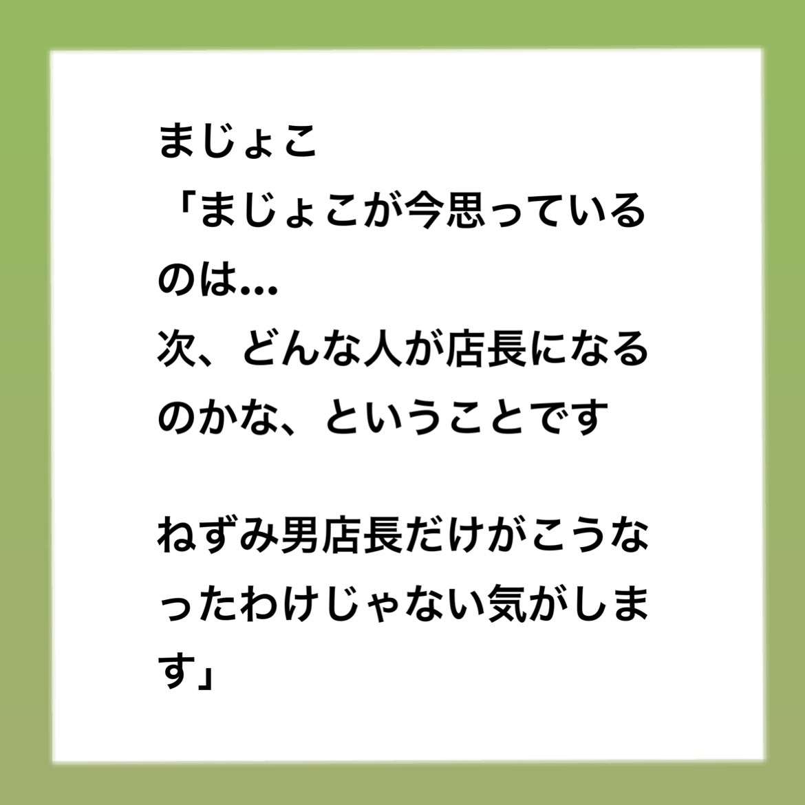 パワハラ事件簿 コーヒー店編 〜 242024.06.23パワハラ事件簿パワハラ ■インスタはこちら 最初から読めます。 ↓まじょこのインスタ■前回のお話はこちら ↓パワハラ事件簿 コーヒー店編 〜 23■本編広告 広告 0 コメントはこちら 同じカテゴリの記事 パワハラ事件簿 コーヒー店編 〜 48 パワハラ事件簿 コーヒー店編 〜 47 パワハラ事件簿 コーヒー店編 〜 46 パワハラ事件簿 コーヒー店編 〜 45 パワハラ事件簿 コーヒー店編 〜 44 パワハラ事件簿 コーヒー店編 〜 43 パワハラ事件簿 コーヒー店編 〜 42 パワハラ事件簿 コーヒー店編 〜 41 パワハラ事件簿 コーヒー店編 〜 40 パワハラ事件簿 コーヒー店編 〜 39 パワハラ事件簿 コーヒー店編 〜 38 パワハラ事件簿 コーヒー店編 〜 37 パワハラ事件簿 コーヒー店編 〜 36 パワハラ事件簿 コーヒー店編 〜 35 パワハラ事件簿 コーヒー店編 〜 34 パワハラ事件簿 コーヒー店編 〜 33 パワハラ事件簿 コーヒー店編 〜 32 パワハラ事件簿 コーヒー店編 〜 31 パワハラ事件簿 コーヒー店編 〜 30 パワハラ事件簿 コーヒー店編 〜 29 パワハラ事件簿 コーヒー店編 〜 28 パワハラ事件簿 コーヒー店編 〜 27 パワハラ事件簿 コーヒー店編 〜 26 パワハラ事件簿 コーヒー店編 〜 25 パワハラ事件簿 コーヒー店編 〜 24 パワハラ事件簿 コーヒー店編 〜 23 パワハラ事件簿 コーヒー店編 〜 22 パワハラ事件簿 コーヒー店編 〜 21 パワハラ事件簿 コーヒー店編 〜 20 パワハラ事件簿 コーヒー店編 〜 19 パワハラ事件簿 コーヒー店編 〜 18 パワハラ事件簿 コーヒー店編 〜 17 パワハラ事件簿 コーヒー店編 〜 16 パワハラ事件簿 コーヒー店編 〜 15 パワハラ事件簿 コーヒー店編 〜 14 パワハラ事件簿 コーヒー店編 〜 13 パワハラ事件簿 コーヒー店編 〜 12 パワハラ事件簿 コーヒー店編 〜 11 パワハラ事件簿 コーヒー店編 〜 10 パワハラ事件簿 コーヒー店編 〜 9 パワハラ事件簿 コーヒー店編 〜 8 パワハラ事件簿 コーヒー店編 〜 7 パワハラ事件簿 コーヒー店編 〜 6 パワハラ事件簿 コーヒー店編 〜 5 パワハラ事件簿 コーヒー店編 〜 4 パワハラ事件簿 コーヒー店編 〜3 パワハラ事件簿 コーヒー店編 〜 2 パワハラ事件簿 コーヒー店編 〜 1 パワハラ事件簿〜幼稚園の先生編〜 115 パワハラ事件簿〜幼稚園の先生編〜 114 パワハラ事件簿〜幼稚園の先生編〜 113 パワハラ事件簿〜幼稚園の先生編〜 112 パワハラ事件簿〜幼稚園の先生編〜 111 パワハラ事件簿〜幼稚園の先生編〜 110 パワハラ事件簿〜幼稚園の先生編〜 109 パワハラ事件簿〜幼稚園の先生編〜 108 パワハラ事件簿〜幼稚園の先生編〜 107 パワハラ事件簿〜幼稚園の先生編〜 106 パワハラ事件簿〜幼稚園の先生編〜 105 パワハラ事件簿〜幼稚園の先生編〜 104 パワハラ事件簿〜幼稚園の先生編〜 103 パワハラ事件簿〜幼稚園の先生編〜 102 パワハラ事件簿〜幼稚園の先生編〜 101 パワハラ事件簿〜幼稚園の先生編〜 100 パワハラ事件簿〜幼稚園の先生編〜 99 パワハラ事件簿〜幼稚園の先生編〜 98 パワハラ事件簿〜幼稚園の先生編〜 97 パワハラ事件簿〜幼稚園の先生編〜 96 パワハラ事件簿〜幼稚園の先生編〜 95 パワハラ事件簿〜幼稚園の先生編〜 94 パワハラ事件簿〜幼稚園の先生編〜 93 パワハラ事件簿〜幼稚園の先生編〜 92 パワハラ事件簿〜幼稚園の先生編〜 91 パワハラ事件簿〜幼稚園の先生編〜 90 パワハラ事件簿〜幼稚園の先生編〜 89 パワハラ事件簿〜幼稚園の先生編〜 88 パワハラ事件簿〜幼稚園の先生編〜 87 パワハラ事件簿〜幼稚園の先生編〜 86 パワハラ事件簿〜幼稚園の先生編〜 85 パワハラ事件簿〜幼稚園の先生編〜 84 パワハラ事件簿〜幼稚園の先生編〜 83 パワハラ事件簿〜幼稚園の先生編〜 82 園長先生とまじょこ 後編 園長先生とまじょこ 前編 パワハラ事件簿〜幼稚園の先生編〜 81 パワハラ事件簿〜幼稚園の先生編〜 80 パワハラ事件簿〜幼稚園の先生編〜 79 パワハラ事件簿〜幼稚園の先生編〜 78 パワハラ事件簿〜幼稚園の先生編〜 77 パワハラ事件簿〜幼稚園の先生編〜 76 パワハラ事件簿〜幼稚園の先生編〜 75 パワハラ事件簿〜幼稚園の先生編〜 74 パワハラ事件簿〜幼稚園の先生編〜 73 パワハラ事件簿〜幼稚園の先生編〜 72 パワハラ事件簿〜幼稚園の先生編〜 71 パワハラ事件簿〜幼稚園の先生編〜 70 パワハラ事件簿〜幼稚園の先生編〜 69 パワハラ事件簿〜幼稚園の先生編〜 68 パワハラ事件簿〜幼稚園の先生編〜 67 パワハラ事件簿〜幼稚園の先生編〜 66 パワハラ事件簿〜幼稚園の先生編〜 65 パワハラ事件簿〜幼稚園の先生編〜 64 パワハラ事件簿〜幼稚園の先生編〜 63 パワハラ事件簿〜幼稚園の先生編〜 62 パワハラ事件簿〜幼稚園の先生編〜 61 パワハラ事件簿〜幼稚園の先生編〜 60 パワハラ事件簿〜幼稚園の先生編〜 59 パワハラ事件簿〜幼稚園の先生編〜 58 パワハラ事件簿〜幼稚園の先生編〜 57 パワハラ事件簿〜幼稚園の先生編〜 56 パワハラ事件簿〜幼稚園の先生編〜 55 パワハラ事件簿〜幼稚園の先生編〜 54 パワハラ事件簿〜幼稚園の先生編〜 53 パワ