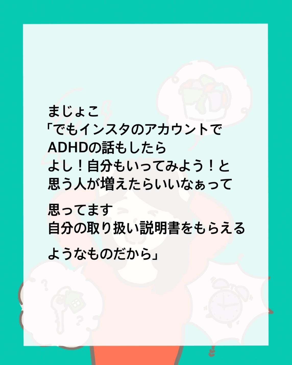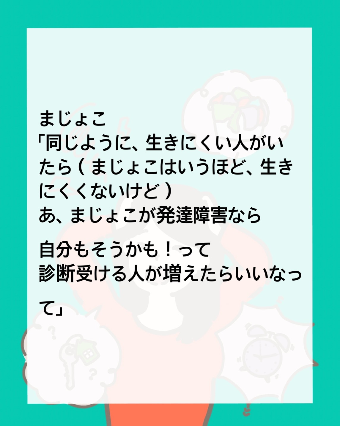 私は失敗作 〜 162026.01.17私は失敗作ADHD, 生き難い, 発達障害 ■インスタはこちら 最初から読めます。 ↓まじょこのインスタ■前回のお話はこちら ↓私は失敗作 〜 15■本編 広告 広告 2 コメントはこちら 同じカテゴリの記事 私は失敗作 〜 24 私は失敗作 〜 23 私は失敗作 〜 22 私は失敗作 〜 21 私は失敗作 〜 20 私は失敗作 〜 19 私は失敗作 〜 18 私は失敗作 〜 17 私は失敗作 〜 16 私は失敗作 〜 15 私は失敗作 〜 14 私は失敗作 〜 13 私は失敗作 〜 12 私は失敗作 〜 11 私は失敗作 〜 10 私は失敗作 〜 9 私は失敗作 〜 8 私は失敗作 〜 7 私は失敗作 〜 6 私は失敗作 〜 5 私は失敗作 〜 4 私は失敗作 〜 3 私は失敗作 〜 2 私は失敗作 〜 1 前の記事 先生の格付け 〜 9 2026.01.16次の記事 私は失敗作 〜 17 2026.02.01アプリなら通知ですぐ読める! NAPBIZブログ